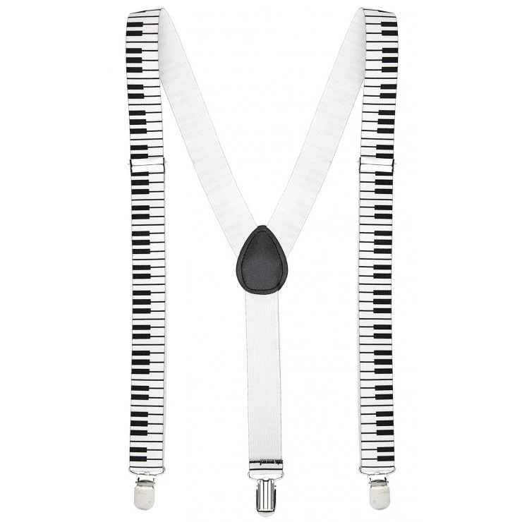 Ces bretelles réglables sont blanches et noires, une impression représentant des touches de piano.