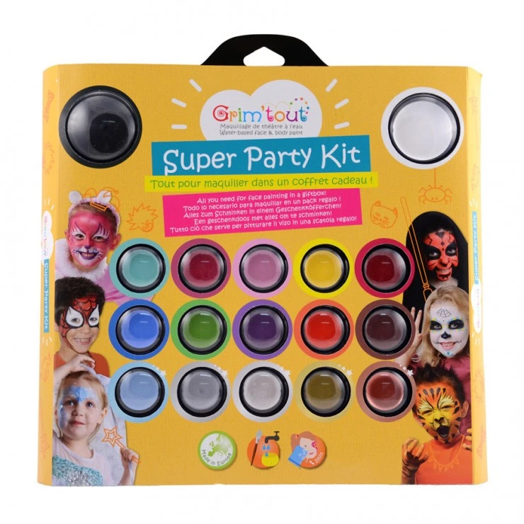 Ce kit contient tout le nĂ©cessaire pour de nombreux maquillages pour Halloween, carnaval ou une fĂŞte d’anniversaire :