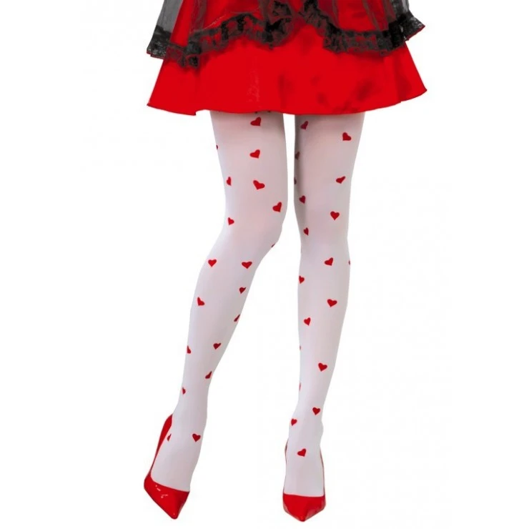 Collant blanc à cœurs rouges