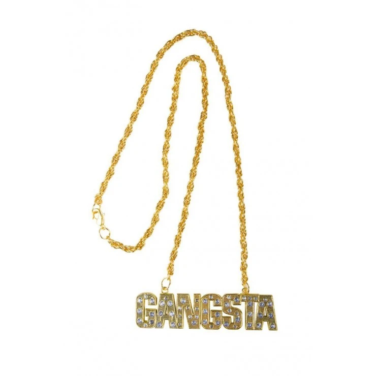 Cette chaßne dorée comprend un large pendentif GANGSTA décoré de strass.