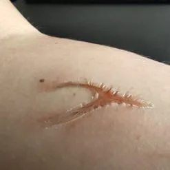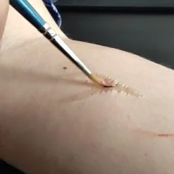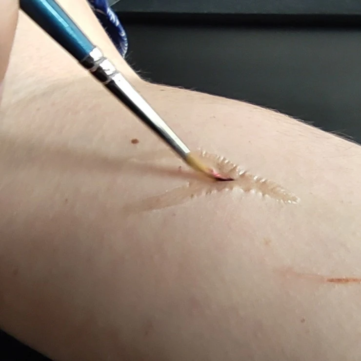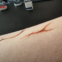 La cicatrice artificielle peut alors être maquillée avec Supracolor (fard gras).
