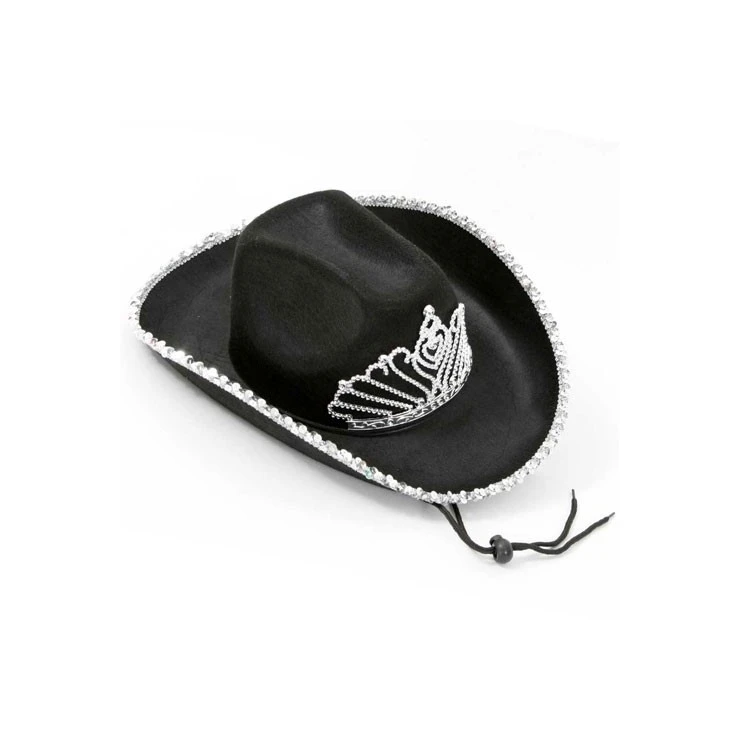 Chapeau de cowgirl avec diadème et contour pailleté.