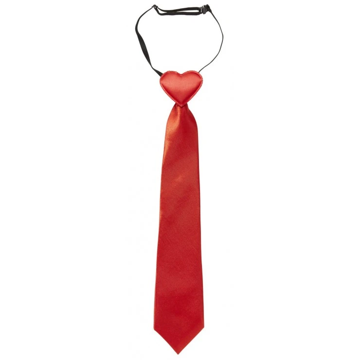 Cette cravate rouge pour la saint Valentin est en forme de coeur en son sommet.