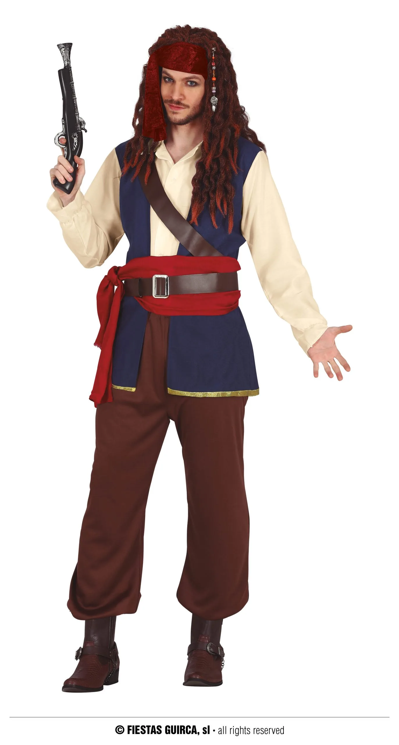 -Comprend : la chemise avec le gilet, le pantalon, la ceinture et le bandeau (le reste des accessoires n’est pas inclus)
