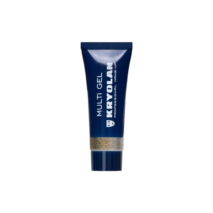 Ces fines paillettes dorĂ©es sont mĂ©langĂ©es Ă un gel qui leur permet d’adhĂ©rer Ă la peau.