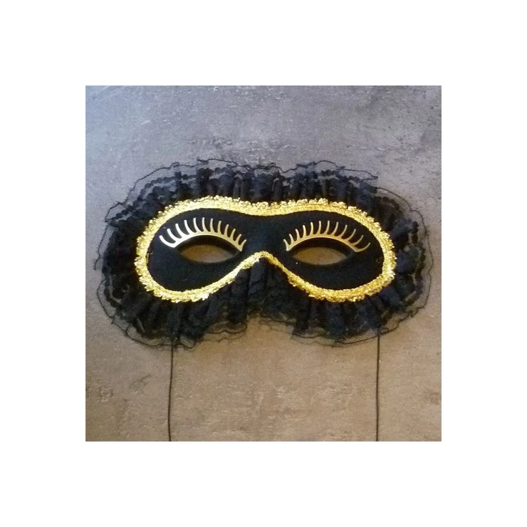 Loup gondolier noir avec cils et liseré doré.
