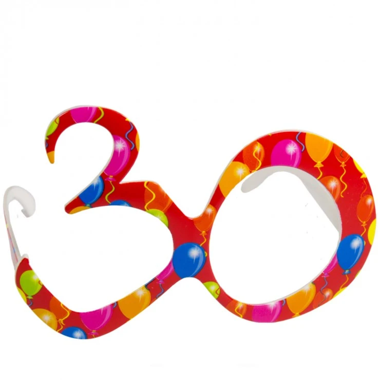 Ces lunettes multicolores avec imprimĂ©s ballons et inscription 30 seront parfaites pour un anniversaire.Â