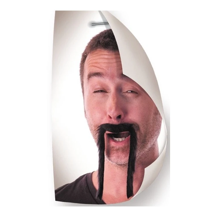 Cette longue moustache peut ĂŞtre modelĂ©e et ainsi s’adapter aussi bien Ă un personnage de Chinois, Sensei, ou biker.