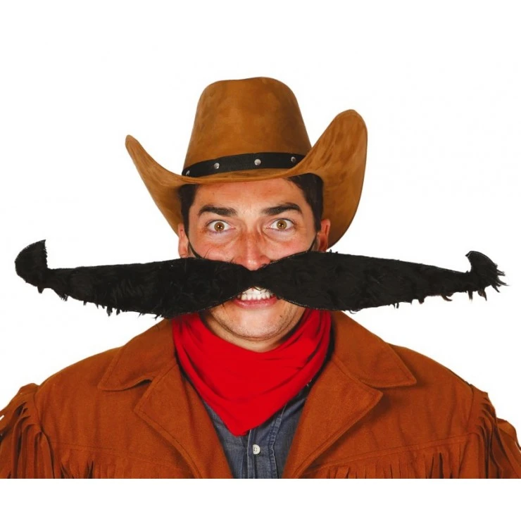 Cette énorme moustache noire cartoonesque mesure environ 55 cm.