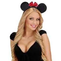 Serre-tĂŞte oreilles de souricette avec noeud rouge.