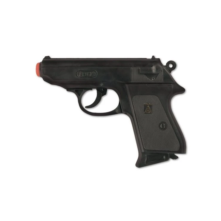 Ce pistolet en plastique pour déguisement de policier est compatible avec des amorces (25 coups).