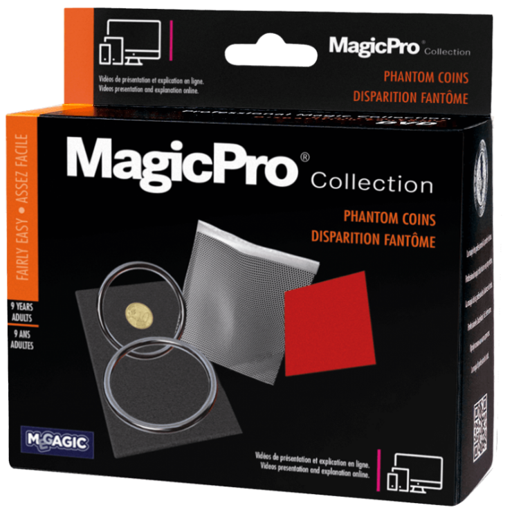 Une pièce disparait dans un sac filet transparent pour rĂ©apparaitre instantanĂ©ment sur un tapis magique, avant de disparaitre Ă nouveau et voyager Ă travers l’espace pour rĂ©apparaitre sous un verre.