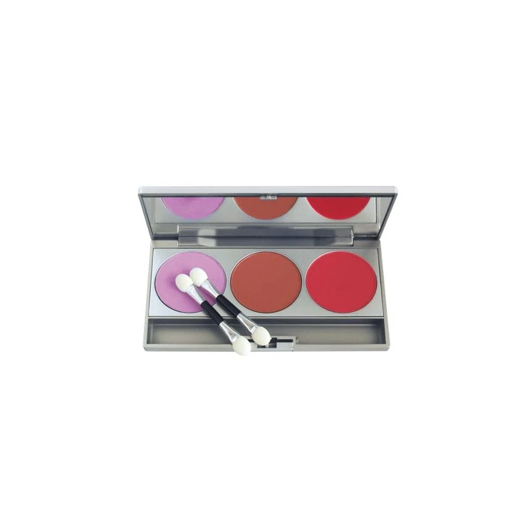 Fard à joues TRIO (3 couleurs) Etui métal argenté, rechargeable + miroir. 9g.
