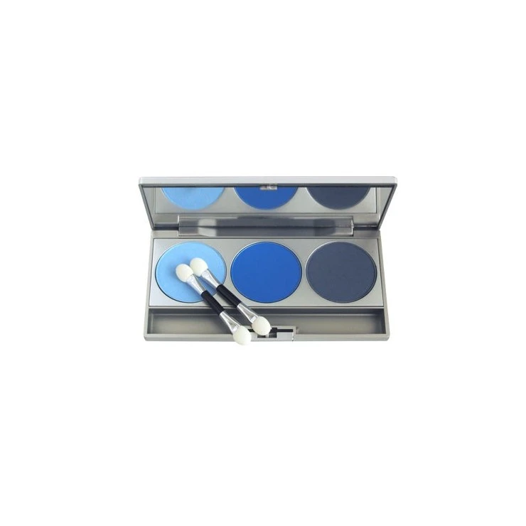 Fard à paupières TRIO (3 couleurs). Etui métal argenté rechargeable + miroir. 10g